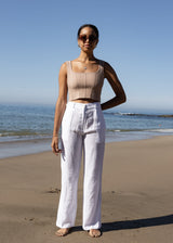 Cotton trousers made sustainably in Bali from our newest Eco Luxe Bali collection. This collection features styles designed by Amelia and Hannah and made by artisans in Bali from eco friendly sustainable materials who are receiving fare wages. These unlined beach trousers are the perfect summer lightweight pant.