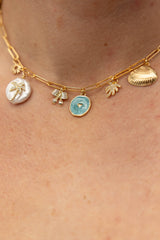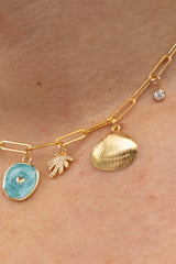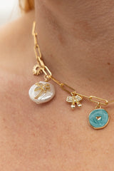 14k Gold filled organic disc style charm with blue shimmer enamel and a dainty center heart. Add a little love to your charm necklace with this piece. Hand make your custom charm necklace in Laguna Beach or build your piece online through adding a base necklace and your selection of charms. Leave us a note on your order for any special requests.