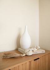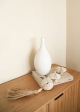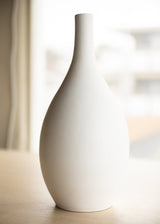A clay oval shaped narrow neck flute vase in white. Ideal for living room decoration or home and office décor. Adds the perfect minimalist, yet chic touch to your home!