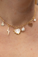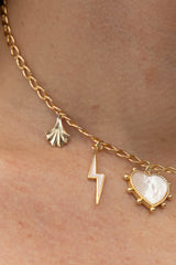 14k Gold filled semi puffy fan charm made to go on our charm necklaces or bracelets. This retro inspired fan charm adds a bit of shine and some texture to your custom piece especially when paired with enamel or gem charms on one of our custom charm pieces. Hand make your custom charm necklace in Laguna Beach or build your piece online through adding a base necklace and your selection of charms. Leave us a note on your order for any special requests.