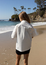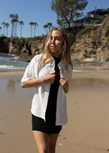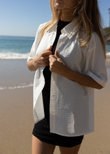 Full length collared shirt in a lightweight breathable cotton. We love the Felix collared shirt paired with a high rise tailored trouser or layered over a satin dress. The cool seersucker fabric gives the top a unique texture that will make any outfit stand out.