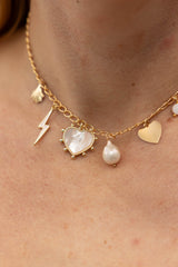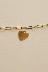 14k Gold filled flat heart charm made to go on our charm necklaces or bracelets. This sweet hear adds a little love and shine to your custom piece especially when paired with enamel or gem charms on one of our custom charm pieces. Hand make your custom charm necklace in Laguna Beach or build your piece online through adding a base necklace and your selection of charms. Leave us a note on your order for any special requests.