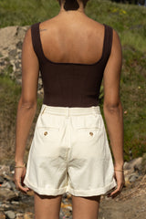 Thick knit square neck cropped top with wide straps and vertical ribbed details. This top is perfect to pair with high rise bottoms, and is thick enough that you could even go braless!