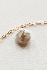 Gold filled Freshwater Pearl Charm featuring a CZ lightning bolt is adorable for a beach lover. This larger pearl charm is ideal as a central charm to build your necklace around. Mix with flat and stone charms for a sweet beach themed necklace. Hand make your custom charm necklace in Laguna Beach or build your piece online through adding a base necklace and your selection of charms. Leave us a note on your order for any special requests.