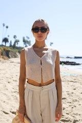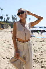 Knobby knit wide strap tank with multiple hook and eye closures. Slightly cropped in length, which pairs perfectly with a mid or high rise bottom. This top is a relaxed fit for a comfortable breezy feel.