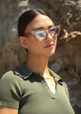 Designed with an effortlessly sharp aesthetic, our MUSE THAT sunglasses are the perfect cat-eye silhouette to finish any outfit. Luxuriously handcrafted from acetate, these sunglasses are specifically designed with narrow proportions and are ideal for anyone with high cheekbones.