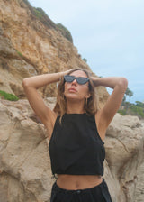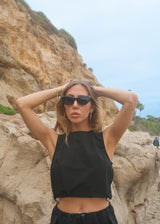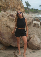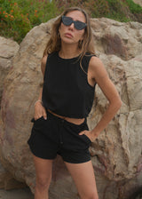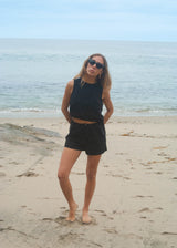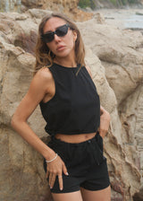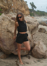 Nylon sporty inspired set with pockets and pull ties for a fun summer sporty look. Wear together with sneakers or sandals or as separates with other pieces in your wardrobe for more looks.