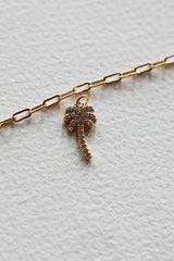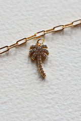 16k Gold filled Palm Tree Charm fully adorned with gems is a cute Southern California touch that can be aded to any style charm necklace. This medium sized charm is beachy and pairs well with larger bold enamel or flat charms on any style of necklace. Hand make your custom charm necklace in Laguna Beach or build your piece online through adding a base necklace and your selection of charms. Leave us a note on your order for any special requests.