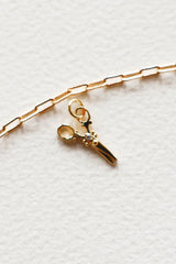 Gold filled gem adorned scissors that are sweet to add to a necklace for a hair stylist. Hand make your custom charm necklace in Laguna Beach or build your piece online through adding a base necklace and your selection of charms. Leave us a note on your order for any special requests.