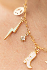 14k Gold filled star shape charm with a bursting gem center featuring a center is a girly style that pairs with enamel and flat charms well. Hand make your custom charm necklace in Laguna Beach or build your piece online through adding a base necklace and your selection of charms.  Leave us a note on your order for any special requests.