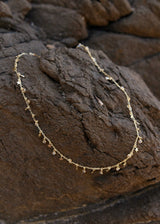 14k gold filled necklace with cute star and cubic zirconia charms. We love how fun and dainty this necklace is; it makes the perfect addition to any necklace stack, or is cute enough to wear solo. This necklace is made to last, and is resistant to tarnish.