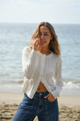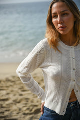 A sweet feminine cardigan sweater with scallop edge details knit in a gorgeous pointelle pattern. This sweater is a classic cardigan cut in full length with sweet detailing that truly makes it pop.