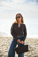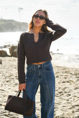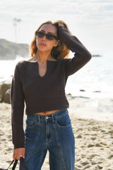 Fuzzy cozy pullover sweater in a more fitted cut featuring a V neckline that is truly unique. This knit is so soft and great for fall winter with denim, a maxi skirt or a dress pant. Layer with a tee for a pop underneath or wear alone and cozy up!
