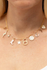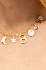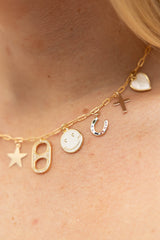14k Gold filled Horse Shoe Charm adorned with a mix of rainbow gems of different cuts perfect for luck or a horse lover! This charm is pairs well with larger bold enamel or flat charms on any style of necklace as its rainbow color is sure to shine. Hand make your custom charm necklace in Laguna Beach or build your piece online through adding a base necklace and your selection of charms. Leave us a note on your order for any special requests.