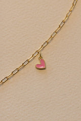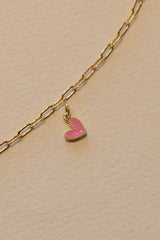 Gold filled Pink Mini Enamel Heart that adds a pop of color to any chain. This charm has a fun shape and a mini size for a little love to your necklace. Hand make your custom charm necklace in Laguna Beach or build your piece online through adding a base necklace and your selection of charms. Leave us a note on your order for any special requests.