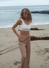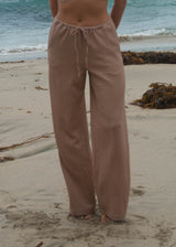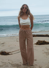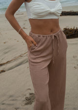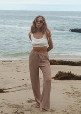 Crinkle texture drawstring lounge pant. The perfect throw on and go pant that can be styles a million ways. Wear by the beach over your bikini or dress up with a cute top and heels for a night out. The crinkle fabric is ultra soft and comfortable to wear.