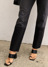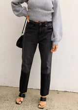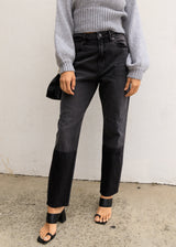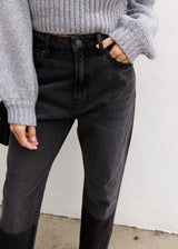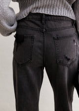 Mom jeans made from 100% Cotton. These jeans have a straight leg that tapers at the hem and a from dip dye panel detail. With slight destruction on the back pockets, these are a cool update to your favorite denim cut.