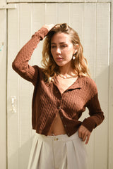 Classic cable knit cardigan in a mid weight knit with tortoise shell style buttons. A style you can wear a million ways!